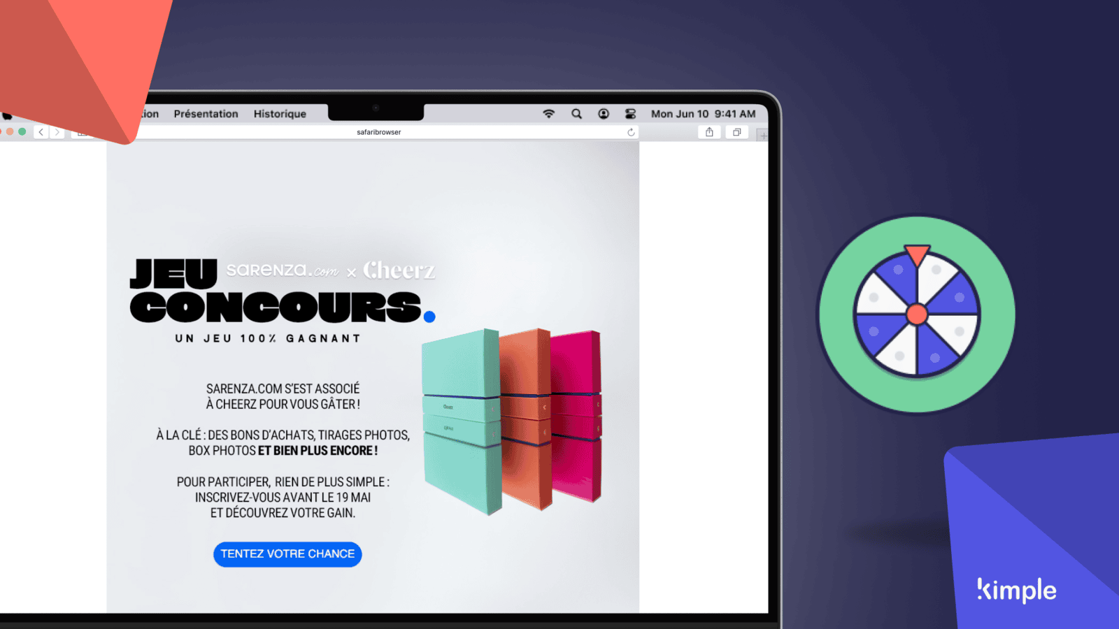 Sarenza et Cheerz se sont associés autour d’un jeu 100% gagnant, misant sur l’instantanéité de la roue digitale pour séduire leurs audiences. Bons d’achat, box photos et tirages exclusifs étaient à remporter, dans une ambiance moderne et élégante.