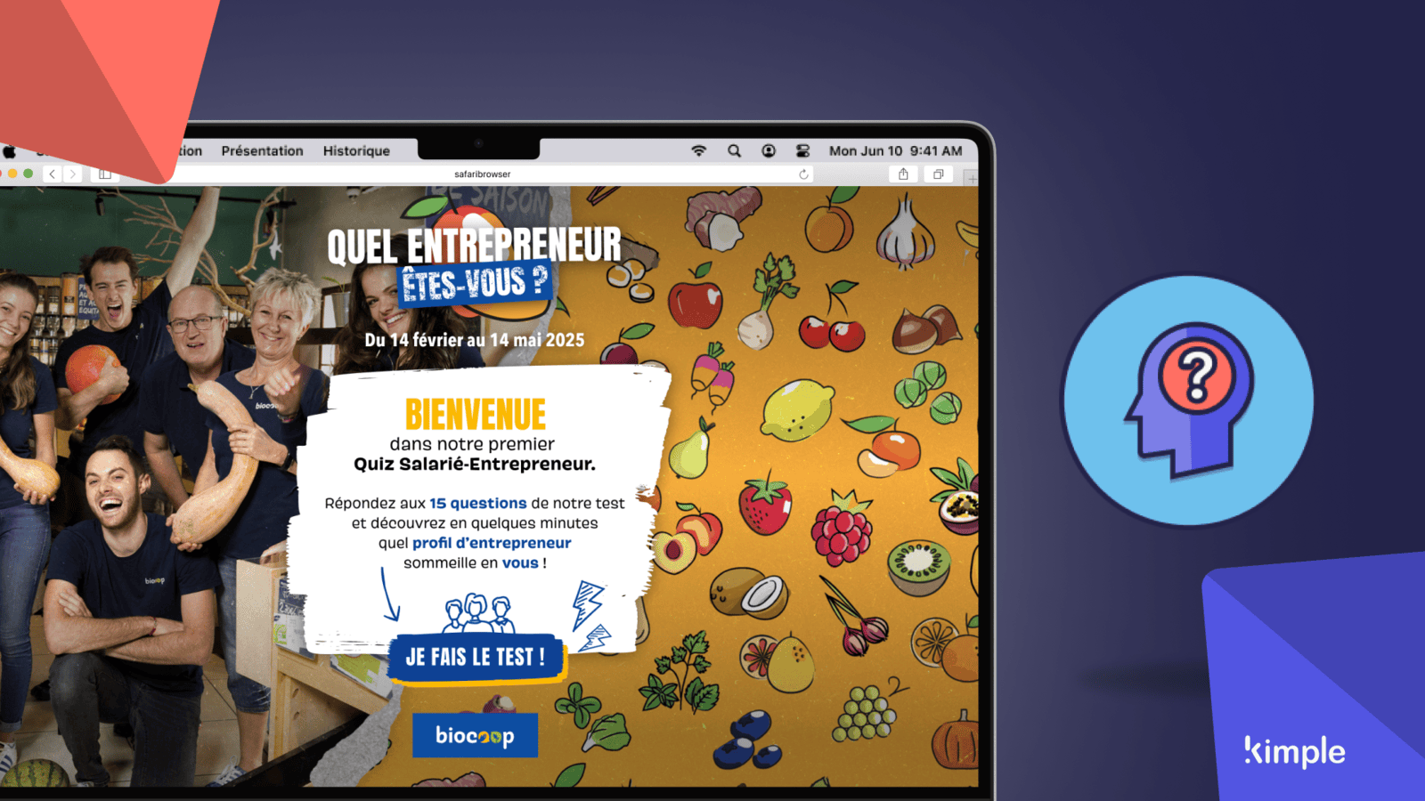 À travers un test de personnalité, les participants découvrent leur profil d’entrepreneur en lien avec l’univers Biocoop. Une activation engageante qui valorise les valeurs de la marque et renforce la relation BtoB.