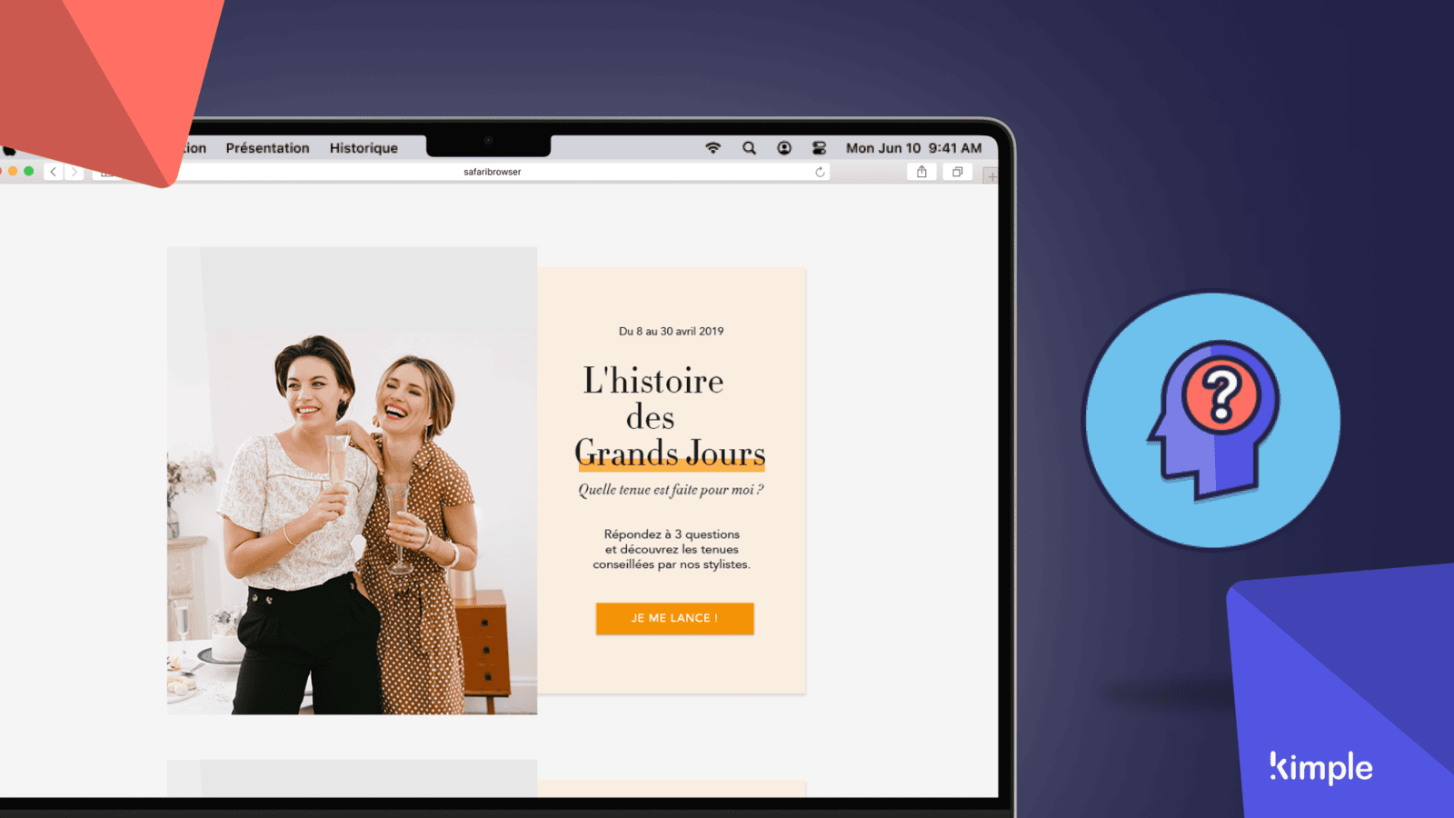 Les participantes répondent à quelques questions pour découvrir la tenue idéale conseillée par les stylistes de Grain de Malice. Un format ludique qui valorise l’offre mode et favorise l’engagement émotionnel avec la marque.